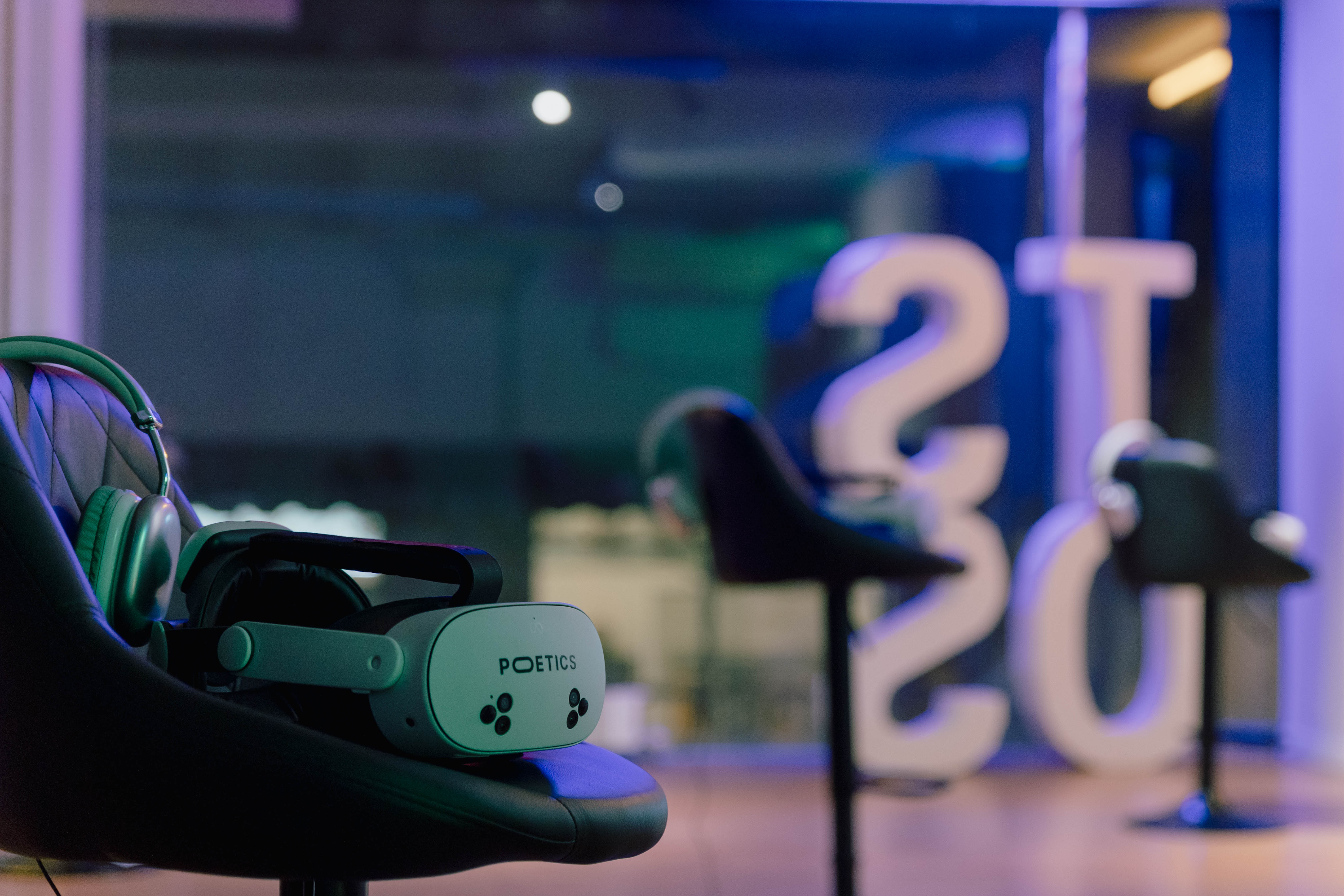 Quickly install single-seat VR pods: Chair, headset and headphones.